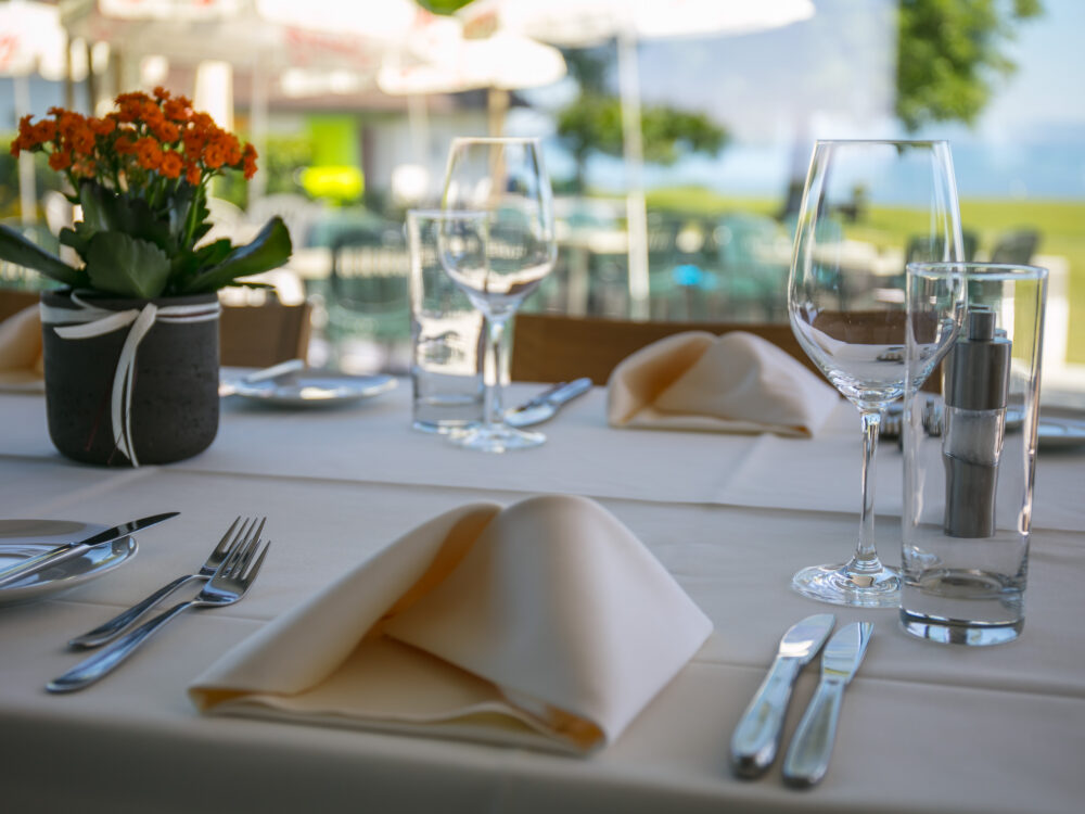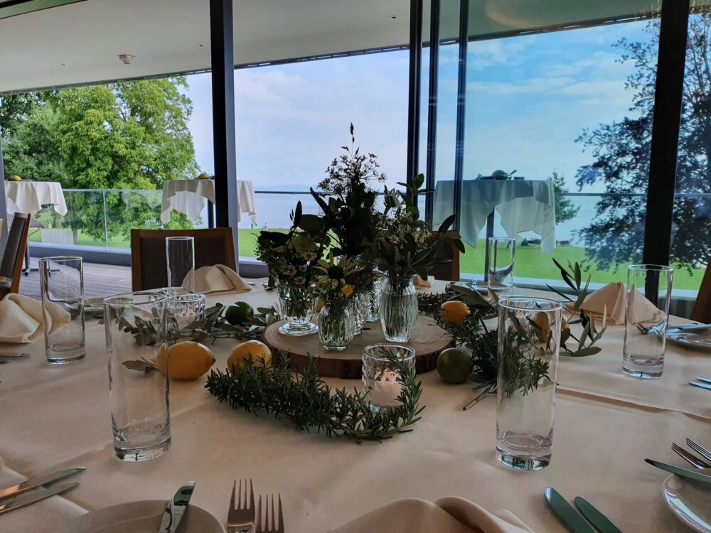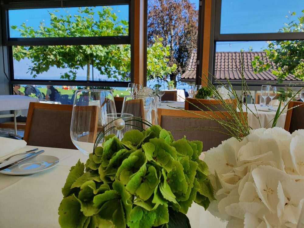 Den Apéro servieren wir Ihnen nach Möglichkeit im Freien. Bei warmem Wetter bedienen wir Sie gerne auf der gedeckten Terrasse mit prächtigem Seepanorama.
