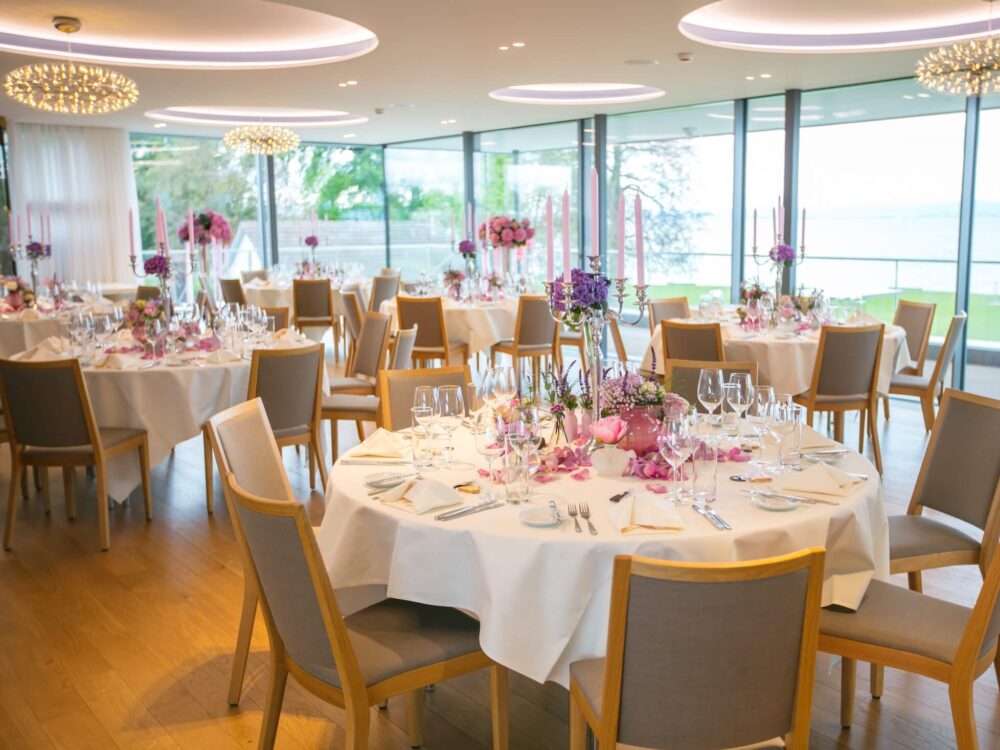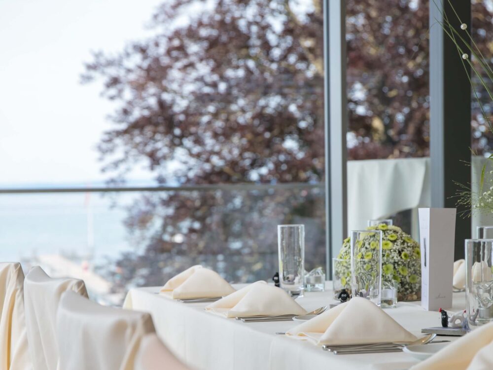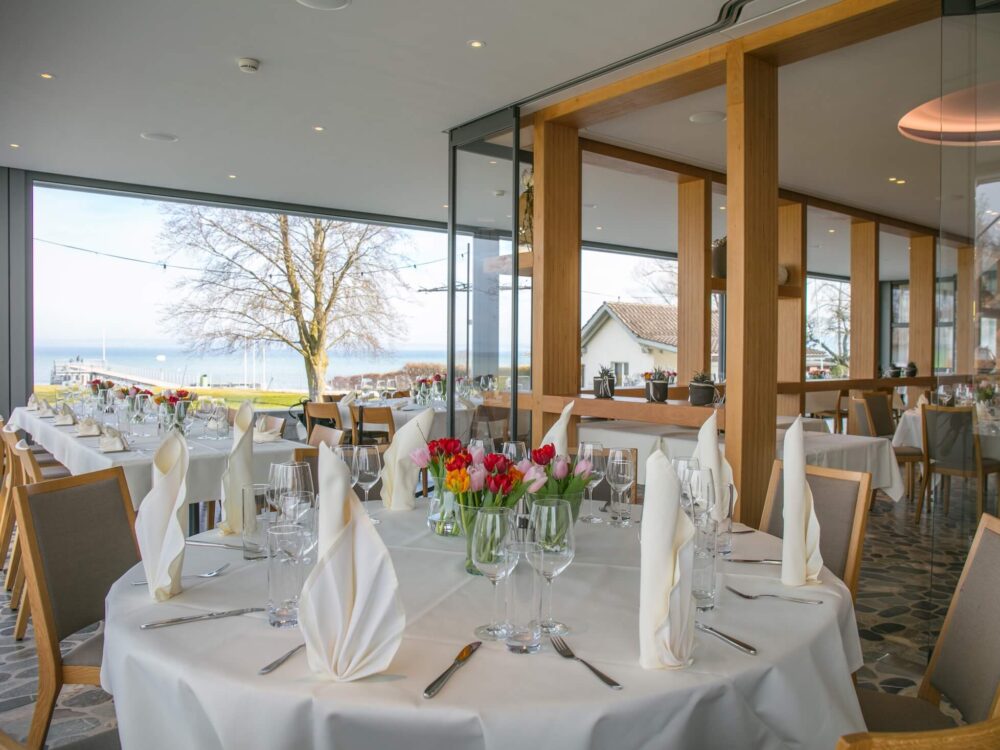 Verschiedene, lichtdurchflutete Räume – alle mit fantastischem Seeblick – stehen für Gesellschaften von 15 – 75 Personen zur Verfügung. Bitte teilen Sie uns den Termin für Ihren Anlass frühzeitig mit, damit wir eine optimale Räumlichkeit für Sie reservieren können.